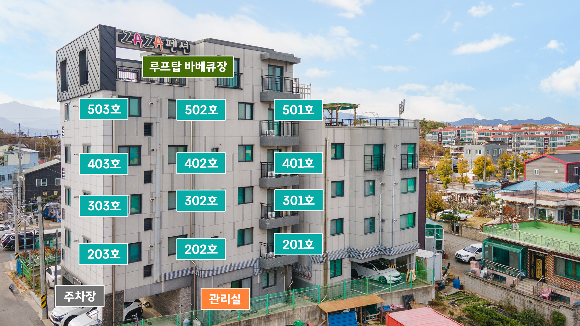 속초 자자 오션뷰 펜션 배치도 안내입니다.