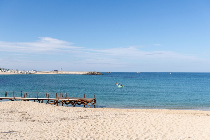 속초 청호해변은 아바이마을 끝자락에 아담하게 자리한 간이해수욕장이다. 해변의 고운 모래는 완만한 경사를 이루며 넓게 깔렸고, 방파제가 감싼 바다는 잔잔하고 수심이 얕아 어린아이들도 놀기가 좋다. (자료출처 : 대한민국 구석구석 - korean.visitkorea.or.kr)