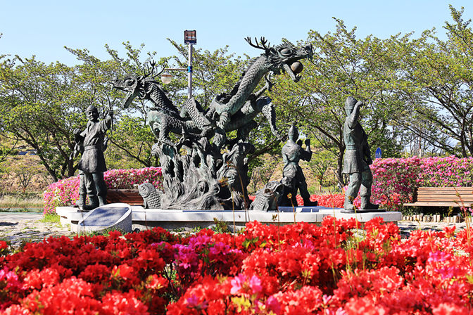 범바위를 지나 영랑호 둘레길을 따라 걷다 보면 영랑호 습지 생태공원을 만날 수 있다. 가을이면 은빛 억새가 낭만적인 풍광을 자아내는 곳으로, 그 입구에 영랑호 설화 공원이 있다. (자료출처 : 대한민국 구석구석 - korean.visitkorea.or.kr)